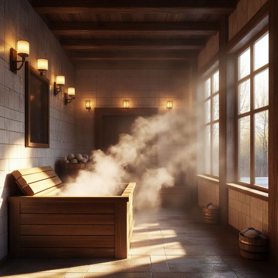 Русская баня славится своими вековыми традициями. Она сочетает высокую влажность (до 70-80%) и умеренную температуру (50-70°C), что создает уникальный микроклимат. Использование веников, особенно из дуба или березы, помогает улучшить кровообращение и очистить кожу.